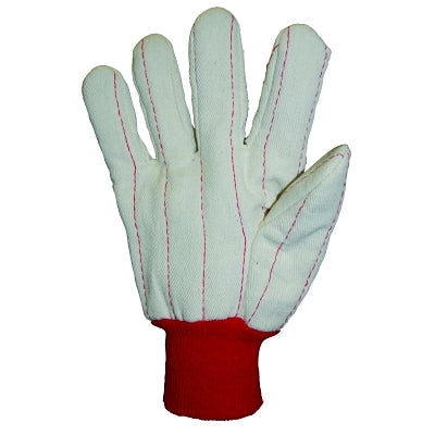 Cotton Canvas Double-Palm with Nap-in Finish Gloves, Red Knit-Wrist Cuff, Natural White, Large