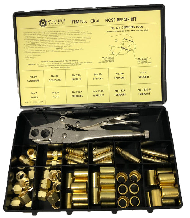 Hose Repair Kit, B-Size Fittings, 3/16 in Hose ID, Hand-Grip 3-Hole Jaw Crimp Tool