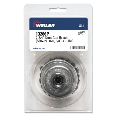 - Single Row Heavy-Duty Knot Wire Cup Brush, 2 3/4 in Dia., 5/8-11 UNC, .020 Steel