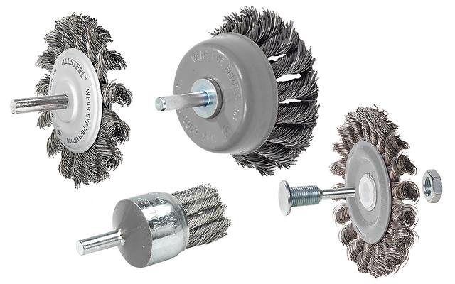 ALLSTEEL™ wire brushes are designed to provide exceptional value and deliver consistent and reliable surface cleaning performance on a variety of metals. Through a strict quality controlled manufacturing process, ALLSTEEL™ brushes are perfectly balanced and feature an identical wire count to ensure vibration-free brushing. Available in a variety of shape and sizes.